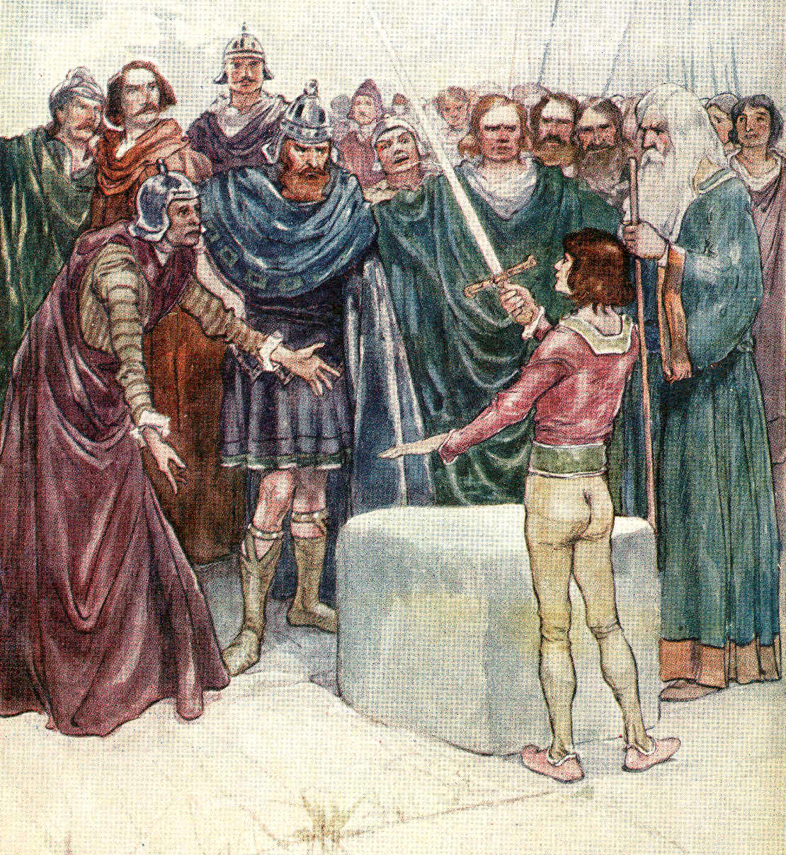 "Whoso pulleth out this sword of this stone and anvil, is rightwise king born of all England."